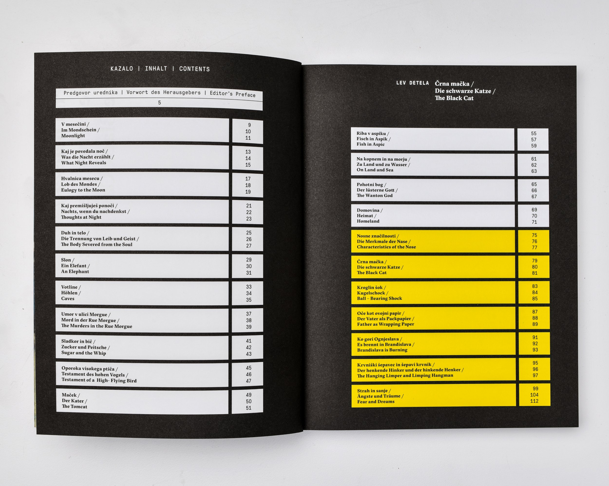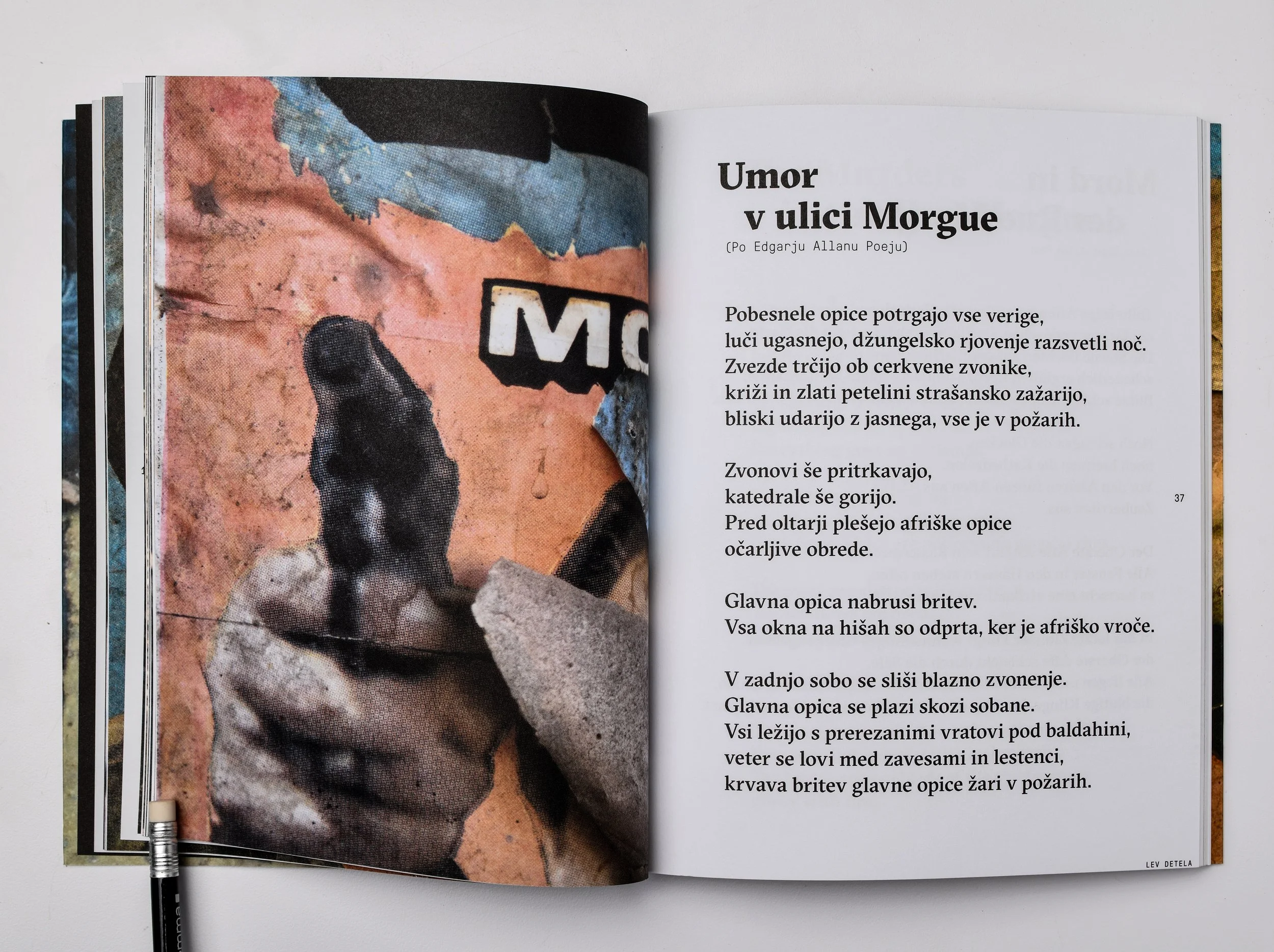 We designed a poetry collection into an interesting book. The book features David Kranzelbinder's photographs, namely a series of photographs of old movie posters, which he took in an abandoned Indian cinema. We used details from these photographs to illustrate the book, which complement the poetry and lyrics of author Lev Detela. The typography used is GT Sectra and GT Pressura Mono. The book format is 156 x 200 mm and has 120 pages.